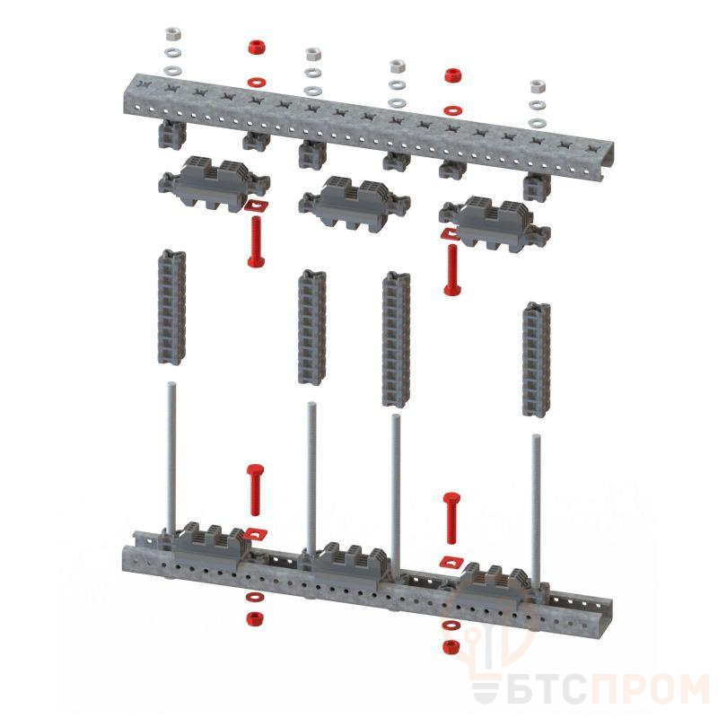 Комплект состоит из болтов и остальных метизов и служит для увеличения межфазного расстояния в шинодержателях главной шиной системы. Не создает магнитного контура при протекании тока по установленным шинам.