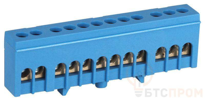 Нулевые шины N предназначены для электрического и механического соединения нулевых проводников. Является проводником, который служит для возврата к источнику остатка напряжения в стандартном случае или выравнивания потенциала в трёхфазной сети. Изделие выполнено из латунной шины сечением 6?9 мм установленной в пластиковый изолятор синего цвета.
