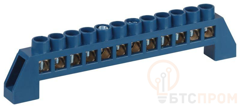 Нулевые шины N предназначены для электрического и механического соединения нулевых проводников. Является проводником, который служит для возврата к источнику остатка напряжения в стандартном случае или выравнивания потенциала в трёхфазной сети. Изделие выполнено из латунной шины сечением 6?9 мм установленной в пластиковый изолятор синего цвета.
