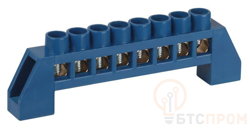 Нулевые шины N предназначены для электрического и механического соединения нулевых проводников. Является проводником, который служит для возврата к источнику остатка напряжения в стандартном случае или выравнивания потенциала в трёхфазной сети. Изделие выполнено из латунной шины сечением 6?9 мм установленной в пластиковый изолятор синего цвета.