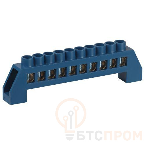 Нулевые шины N предназначены для электрического и механического соединения нулевых проводников. Является проводником, который служит для возврата к источнику остатка напряжения в стандартном случае или выравнивания потенциала в трёхфазной сети. Изделие выполнено из латунной шины сечением 8?12 мм установленной в пластиковый изолятор синего цвета.