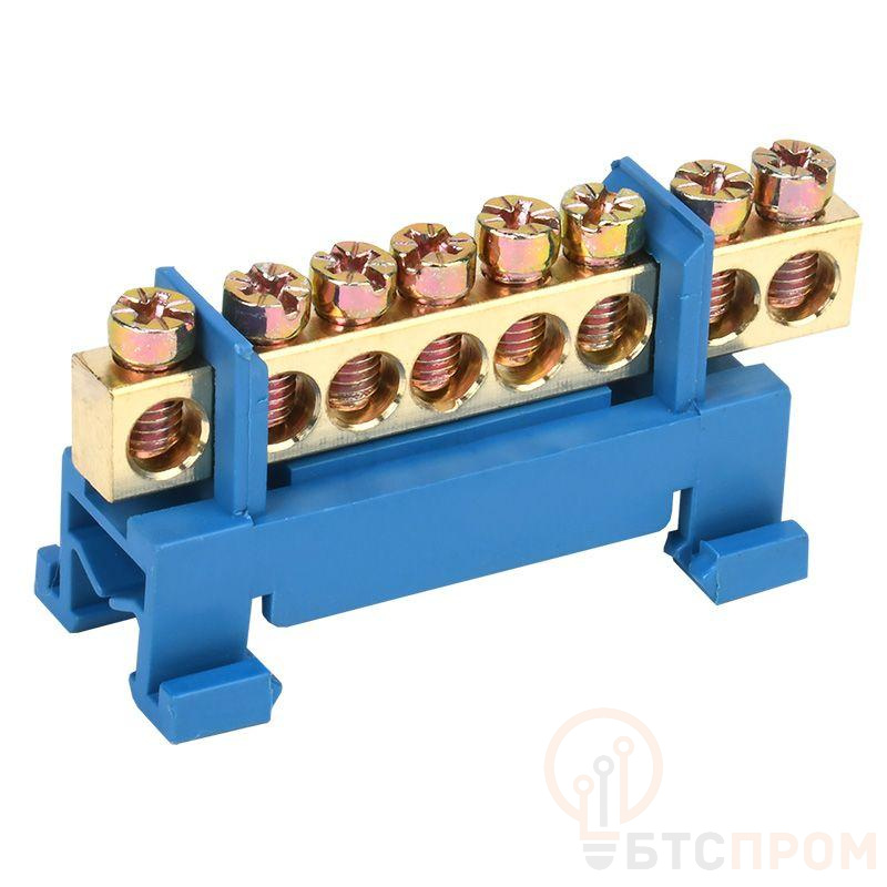 Шина "N" нулевая с синим изолятором тип "Стойка" на DIN-рейку 6x9мм 8 групп Rexant 11-2353 фото в каталоге от BTSprom.by