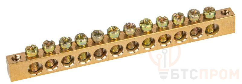 Шины латунные PEN "земля-ноль" применяются для электрического и механического соединения нулевых, защитных и фазных проводников в электрических щитах и распределительных устройствах. Изделия выполняются из латуни соответствующего сечения с отверстиями обладающими винтовыми зажимами для подключения проводников. <strong>Применение «нулевых» шин позволяет:</strong> - свести в одну общую группу все нулевые или заземляющие проводники, входящие и отходящие, - сократить количество проводников в щитке, что упрощает его обслуживание, - сэкономить пространство и без особых усилий размещать новые элементы, - обеспечить стабильное и долговечное соединение. <strong>Особенности конструкции изделия:</strong> - Материал: латунь Л56 - Сечение: 6х9 мм - Номинальный ток In: 100 А - Диаметр отверстия для присоединения входящих проводников: o 6 мм - Диаметр отверстия для присоединения отходящих проводников: o 4 мм - Прижимные винты изготовлены из оцинкованной стали и обладают скруглённой контактной частью, что исключает перекусывание и повреждение подключаемых проводников