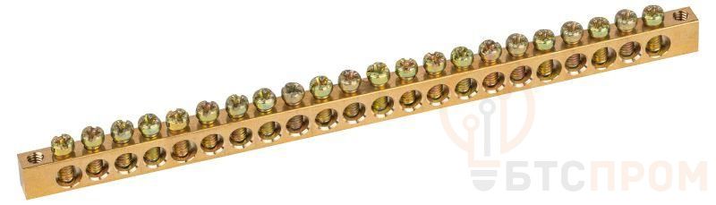 Шины латунные PEN "земля-ноль" применяются для электрического и механического соединения нулевых, защитных и фазных проводников в электрических щитах и распределительных устройствах. Изделия выполняются из латуни соответствующего сечения с отверстиями обладающими винтовыми зажимами для подключения проводников. <strong>Применение «нулевых» шин позволяет:</strong> - свести в одну общую группу все нулевые или заземляющие проводники, входящие и отходящие, - сократить количество проводников в щитке, что упрощает его обслуживание, - сэкономить пространство и без особых усилий размещать новые элементы, - обеспечить стабильное и долговечное соединение. <strong>Особенности конструкции изделия:</strong> - Материал: латунь Л56 - Сечение: 6х9 мм - Номинальный ток In: 100 А - Диаметр отверстия для присоединения входящих проводников: o 6 мм - Диаметр отверстия для присоединения отходящих проводников: o 4 мм - Прижимные винты изготовлены из оцинкованной стали и обладают скруглённой контактной частью, что исключает перекусывание и повреждение подключаемых проводников