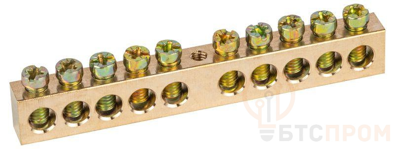 Шина NO-122-31 PEN земля-ноль 8х12мм 10/1 латунная крепеж по центру Эра Б0047246 фото в каталоге от BTSprom.by