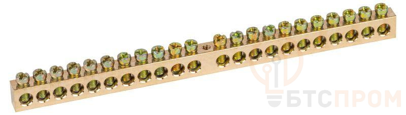 Шины латунные PEN "земля-ноль" применяются для электрического и механического соединения нулевых, защитных и фазных проводников в электрических щитах и распределительных устройствах. Изделия выполняются из латуни соответствующего сечения с отверстиями обладающими винтовыми зажимами для подключения проводников. <strong>Применение «нулевых» шин позволяет:</strong> - свести в одну общую группу все нулевые или заземляющие проводники, входящие и отходящие, - сократить количество проводников в щитке, что упрощает его обслуживание, - сэкономить пространство и без особых усилий размещать новые элементы, - обеспечить стабильное и долговечное соединение. <strong>Особенности конструкции изделия:</strong> - Материал: латунь Л56 - Сечение: 8х12 мм - Номинальный ток In: 125 А - Диаметр отверстия для присоединения входящих проводников: o 7,5 мм - Диаметр отверстия для присоединения отходящих проводников: o 5 мм - Прижимные винты изготовлены из оцинкованной стали и обладают скруглённой контактной частью, что исключает перекусывание и повреждение подключаемых проводников