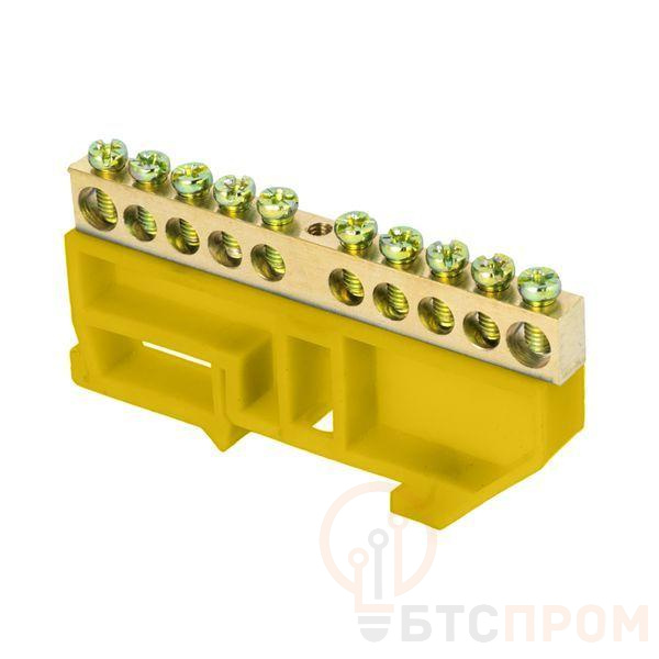 Шина нулевая N 6х9 10 отвер. латунь желт. изолятор на DIN-рейку розн. стикер PROxima EKF sn0-63-10-dz-r