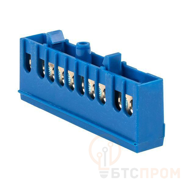 Шина нулевая N 6х9 10 отверстий синий изолированный корпус на DIN-рейку латунь PROxima EKF sn0-63-10-ib