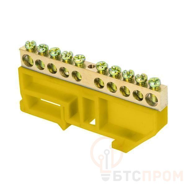 –Шина нулевая N 6х9 10 отверстий желт. изолятор на DIN-рейку латунь PROxima EKF sn0-63-10-dz