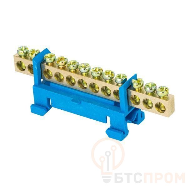 Шина нулевая N 6х9 12 отверстий синий изолятор тип "Стойка" на DIN-рейку латунь PROxima EKF sn0-63-12-sb
