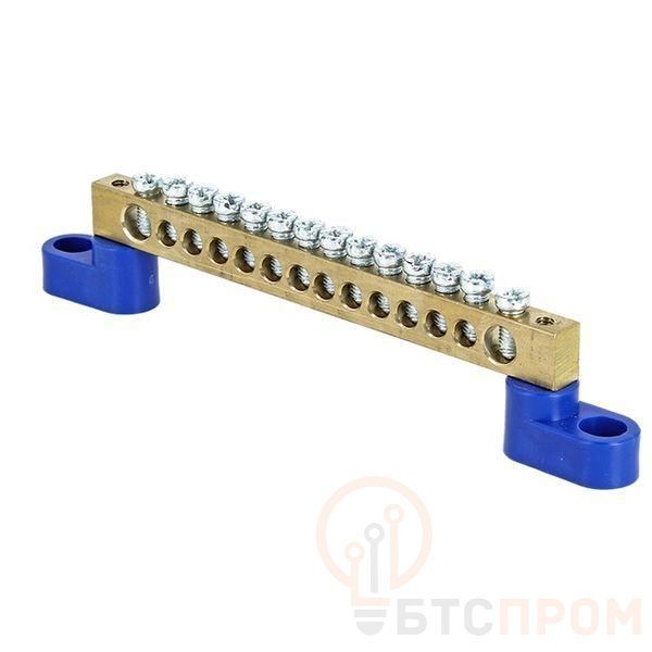 Шина нулевая N 6х9 14 отверстий 2 синих угловых изолятора латунь розн. стикер PROxima EKF sn0-63-14-2-r