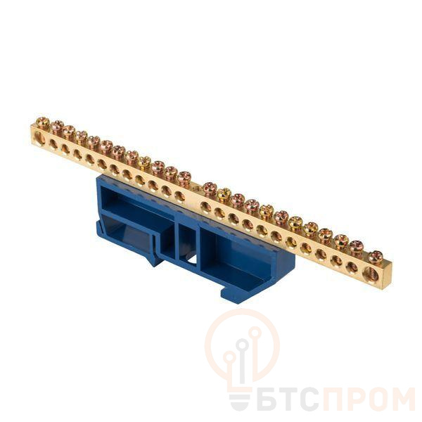 Шина нулевая N 6х9 24 отвер. латунь синий изолятор на DIN-рейку EKF sn0-63-24-d фото в каталоге от BTSprom.by