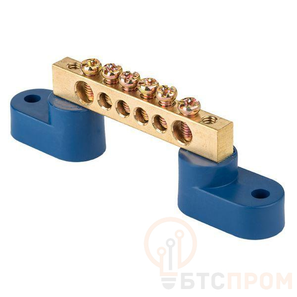 Шина нулевая N 6х9 6 отверстий 2 синих угловых изолятора латунь PROxima EKF sn0-2-63-06 фото в каталоге от BTSprom.by