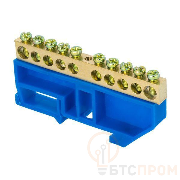 Шина нулевая N 8х12 10 отвер. латунь син. изолятор на DIN-рейку PROxima EKF sn0-125-10-d фото в каталоге от BTSprom.by
