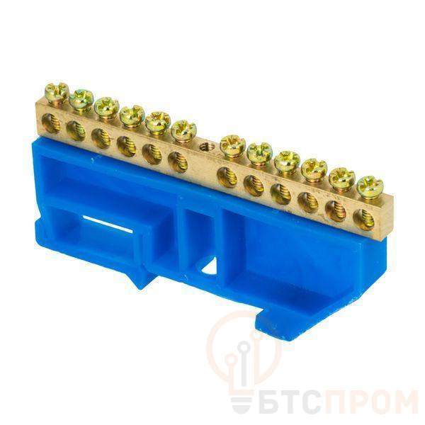Шина нулевая N 8х12 12 отвер. латунь син. изолятор на DIN-рейку PROxima EKF sn0-125-12-d фото в каталоге от BTSprom.by