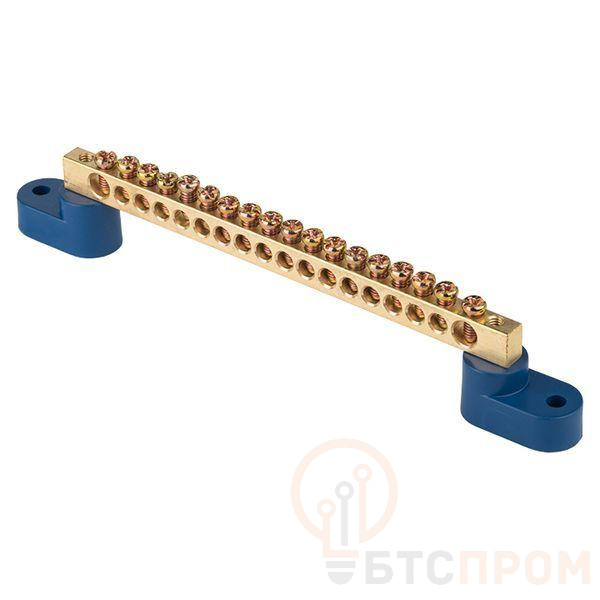 Шина нулевая N 8х12 18 отверстий 2 синих угловых изолятора латунь PROxima EKF sn0-125-18-2 фото в каталоге от BTSprom.by