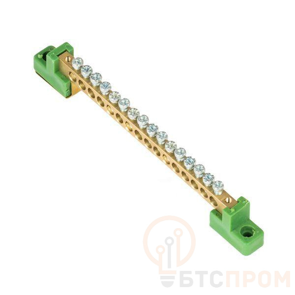 Шина нулевая PE 6х9 16 отвер. латунь с контактной пластиной 2 зел. угловых изолятора PROxima EKF sn0-63-16-2-pe