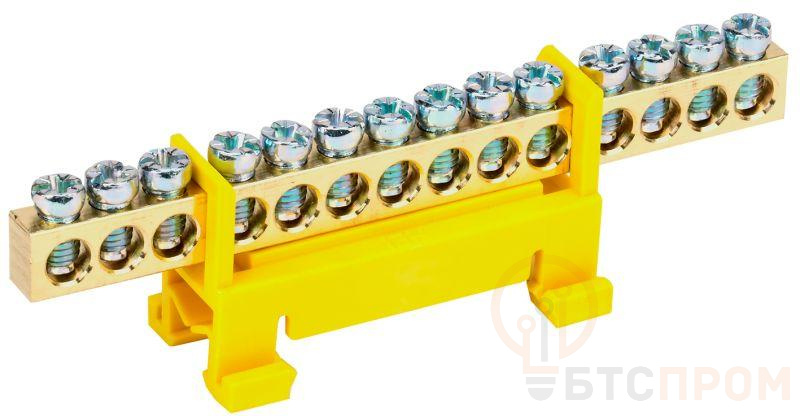 шина нулевая pe 6х9 14 отверстий желт. изолятор тип "стойка" на din-рейку латунь proxima ekf sn0-63-14-sy от BTSprom.by