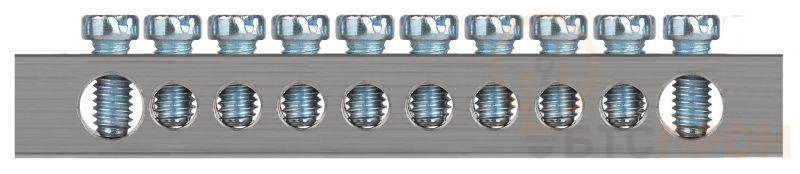 Нулевые шины N предназначены для электрического и механического соединения нулевых, защитных и фазных проводников. Изделие выполнено из латунной шины сечением 6?9 мм с никелированным покрытием для высокой коррозионной стойкости материала и позволяет одновременно подключать проводники из меди и алюминиевого сплава серии 8000.