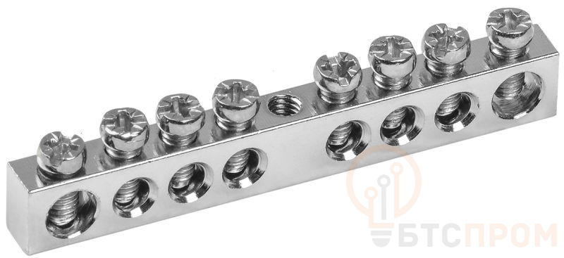 Шина PEN "земля-ноль" 6х9мм 8/1 Ni (8групп/крепеж по центру) IEK YNN10-08-100-N фото в каталоге от BTSprom.by