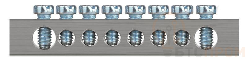 Нулевые шины N предназначены для электрического и механического соединения нулевых, защитных и фазных проводников. Изделие выполнено из латунной шины сечением 6?9 мм с никелированным покрытием для высокой коррозионной стойкости материала и позволяет одновременно подключать проводники из меди и алюминиевого сплава серии 8000.