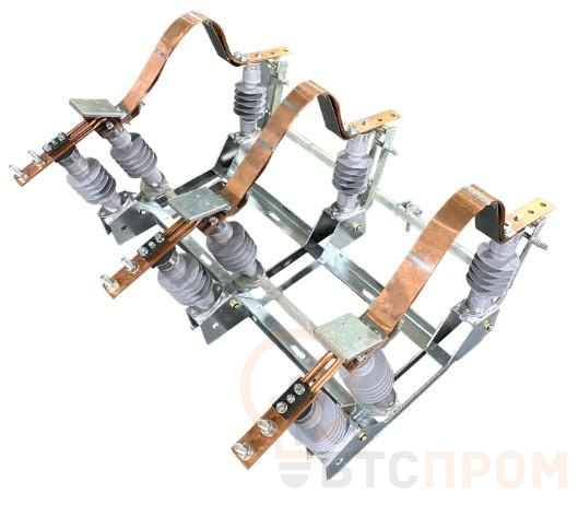 Разъединители серии РЛК выполнены в виде трехполюсного аппарата качающегося типа, каждый полюс которого имеет две неподвижные колонки, установленные на раме разъединителя, и одну подвижную колонку, установленную на поворотном кронштейне, которая имеет возможность качаться в направлении продольной оси разъединителя.
