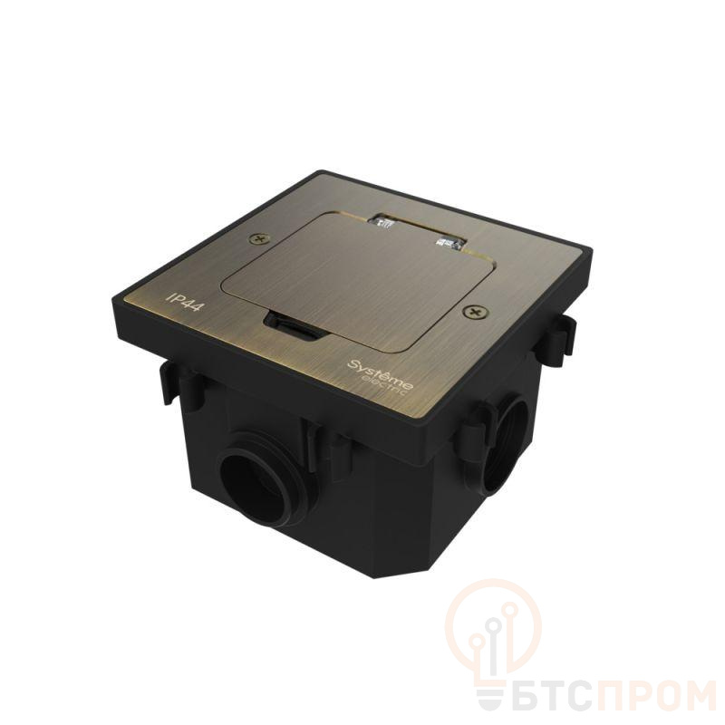 Лючок MultiDesk MDK20 на 2мод. IP44 с монтажной коробкой для бетонных полов античная латунь SE MDK20202BC