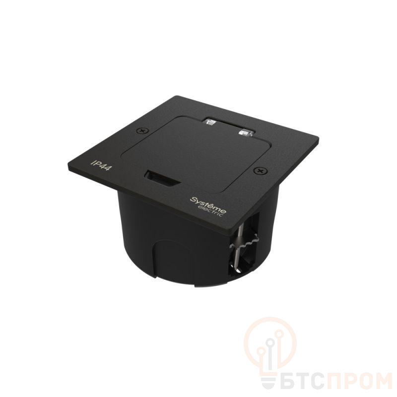 Лючок MultiDesk MDK20 на 2мод. IP44 с монтажной коробкой для стены фальшпола стола черн. матов. SE MDK20102MBA