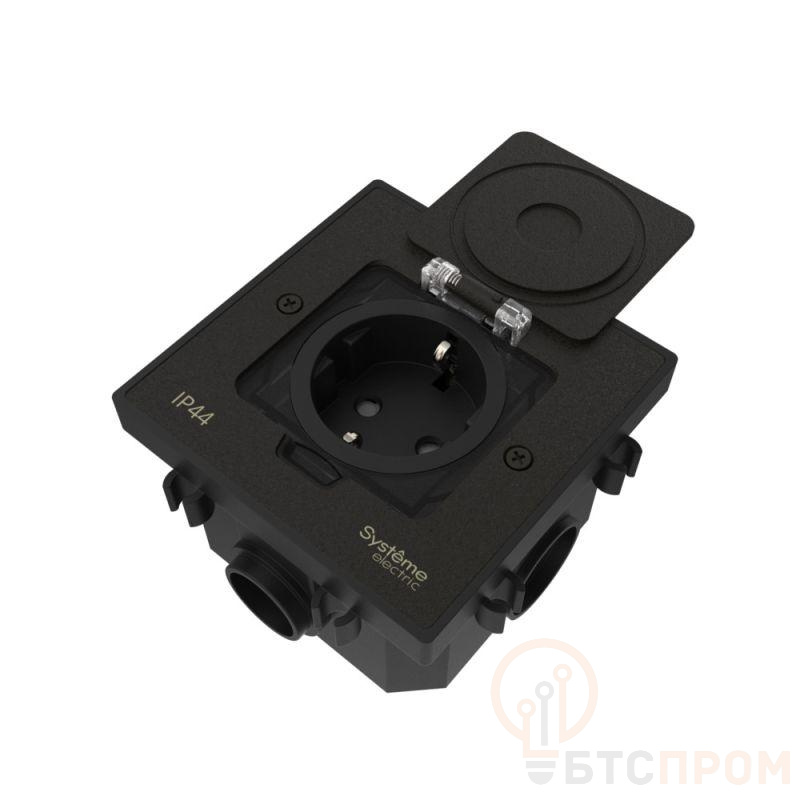 Лючок MultiDesk MDK21 с розеткой 2P+E 16А 250В IP44 с монтажной коробкой для бетонных полов черн. матов. SE MDK21202MBC