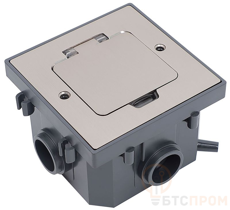 Лючок напольный IP44 предназначен для постоянного или временного подключения электрооборудования и информационных сетей в помещениях с высокой проходимостью и возможным попаданием влаги на напольное покрытие, где невозможно организовать подключение в стенах или использовать переносные решения. Лючок можно укомплектовать до 2 модулей (45х22,5 мм) или до 1 поста (45х45 мм) электроустановочных изделий 45х45 серий Primer или Daccord. Монтаж лючка производиться в бетонные полы. Монтажные коробки лючков могут быть жестко соединены между собой, что открывает возможность установки нескольких лючков в ровный ряд. Лючок представлен в цвете матовые никель, который подойдет к большинству напольных покрытий. Комплектация лючка включает все необходимое для монтажа. Простая и надежная система открытия лючка с откидыванием на 180° предоставляет максимальный доступ к розеткам. Степень защиты от ударов IK09. Установка вровень с напольным покрытием.