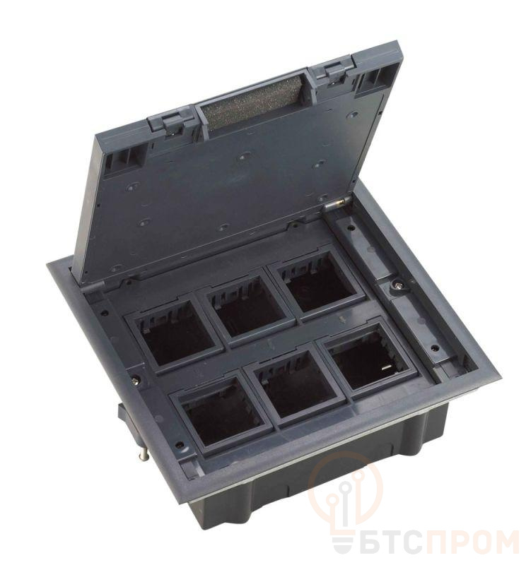 MultiDesk Лючок предназначен для установки в фальшпол толщиной 5…50 мм. Монтажная коробка идёт в комплекте. В лючок можно установить до 12 модулей (6 постов) ЭУИ стандарта 45 мм, например, модульные ЭУИ W45. Лючок выполнен из пластика и имеет степень пылевлагозащиты IP40 при закрытой крышке, механическая стойкость - IK10. Сторону открывания крышки лючка можно менять. Имеется регулировка лючка по высоте - от 73 до 105 мм. Крышка лючка усилена металлической пластиной. Поставляется без ЭУИ.