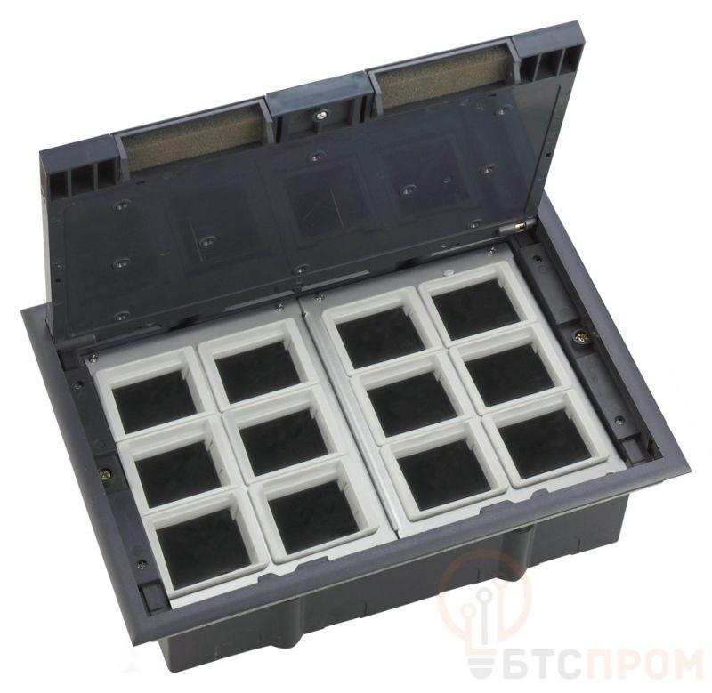 MultiDesk Лючок предназначен для установки в фальшпол толщиной 5…50 мм. Монтажная коробка идёт в комплекте. В лючок можно установить до 24 модулей (12 постов) ЭУИ стандарта 45 мм, например, модульные ЭУИ W45. Лючок выполнен из пластика и имеет степень пылевлагозащиты IP40 при закрытой крышке, механическая стойкость - IK10. Сторону открывания крышки лючка можно менять. Имеется регулировка лючка по высоте - от 74 до 105 мм. Крышка лючка усилена металлической пластиной. Поставляется без ЭУИ.