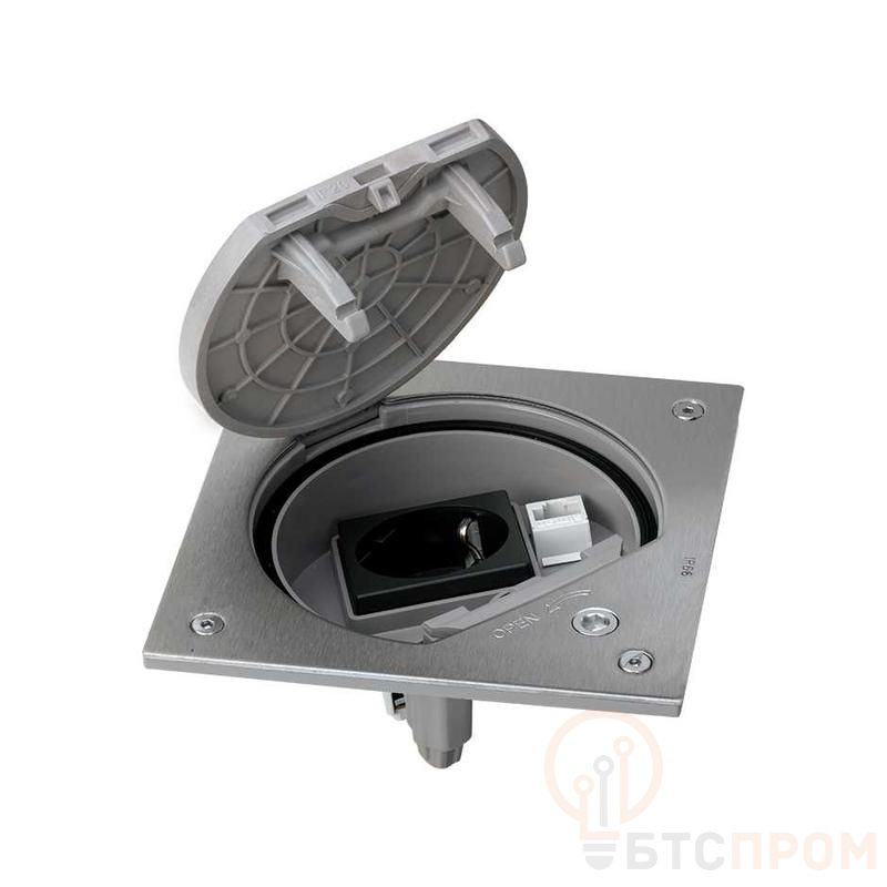 Основа влагостойкая IP66 с розеткой 2P+E Schuko К45 с коннектором RJ45 кат.5E UTP с замком сталь Simon KSE15USEC-23-72