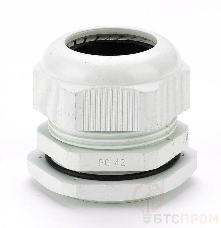 Кабельный ввод серии КВ-101 Dekraft; типа PG 42 диаметр кабеля – от 32 до 38 мм; цвет – белый; материал – пластик; степень защиты - IP54; количество в упаковке – 20 шт. Кабельный ввод состоит из фиксирующей гайки, корпуса, уплотнения из нейлона, а также из уплотнителя и прокладки из неопрена. Кабельные вводы имеют химическую стойкость к соленой воде, слабым кислотам, маслам, нефтепродуктам и основным растворителям. Конструкция кабельных вводов позволяет пропускать кабель без его демонтажа.