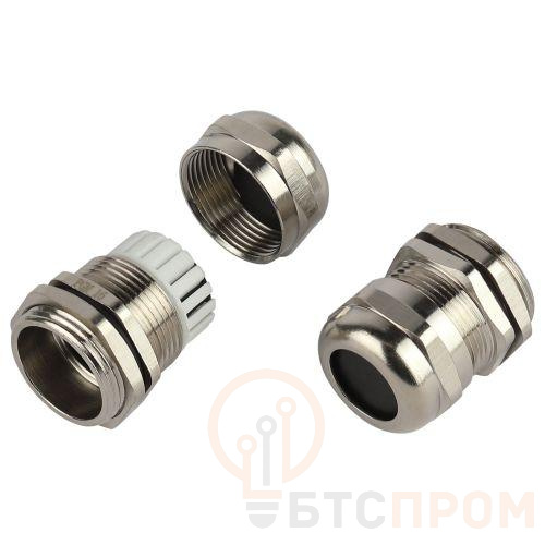 Кабельные вводы (сальники) <strong>PGM</strong> позволяют создавать безопасный и долговечный ввод электрических проводников в распределительные щиты, монтажные коробки и электроустановки. Устанавливаются в местах ввода-вывода проводников в электроустановку при помощи трубного (газового) ключа и защищают от проникновения вовнутрь пыли и влаги, а также защищают проводники от механических повреждений. Кабельные вводы (сальники) латунные серии PGM состоят из гайки-фиксатора, уплотнительного кольца, корпуса, фиксирующего зажима, зажимной гайки, уплотнительного элемента с защитной мембраной. Устанавливаются в комплексных оболочках (сборки, шкафы, распределительные коробки и пр.) для достижения степени защиты IP68. Благодаря латунному корпусу и антикоррозионному никелированному покрытию обладают особой прочностью, долговечностью и устойчивостью к агрессивным воздействиям внешней среды. <strong>Особенности конструкции:</strong> · Степень защиты IP68. · Тип резьбы: PG-дюймовая электроарматурная по DIN 40430. · Установлена защитная мембрана для защиты от попадания влаги и пыли. · Повышенная стойкость к агрессивным средам: синтетическим маслам и всем видам топлива, морскому климату, радиации, высоким температурам, кислотам, жирам, растворителям. · Материал корпуса и прижимной и накидной гаек: никелированная латунь. · Материал зубчатой муфты: нейлон 6.6, не поддерживает горение, не содержит галогенов по UL94V2.
