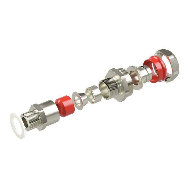 Взрывозащищенный кабельный ввод серии КАЕРМ для бронированного инебронированного кабеля в металлорукаве COSMEC Dn:15 М20х1,5 d:5,8-12мм.Никелированнаялатунь IP66/IP68. Используется для ввода кабеля непосредственно в корпус электрооборудования шкафа, щитка, клеммной коробки, поста управления, а также для прокладки кабельной линии во взрывоопасной атмосфере.