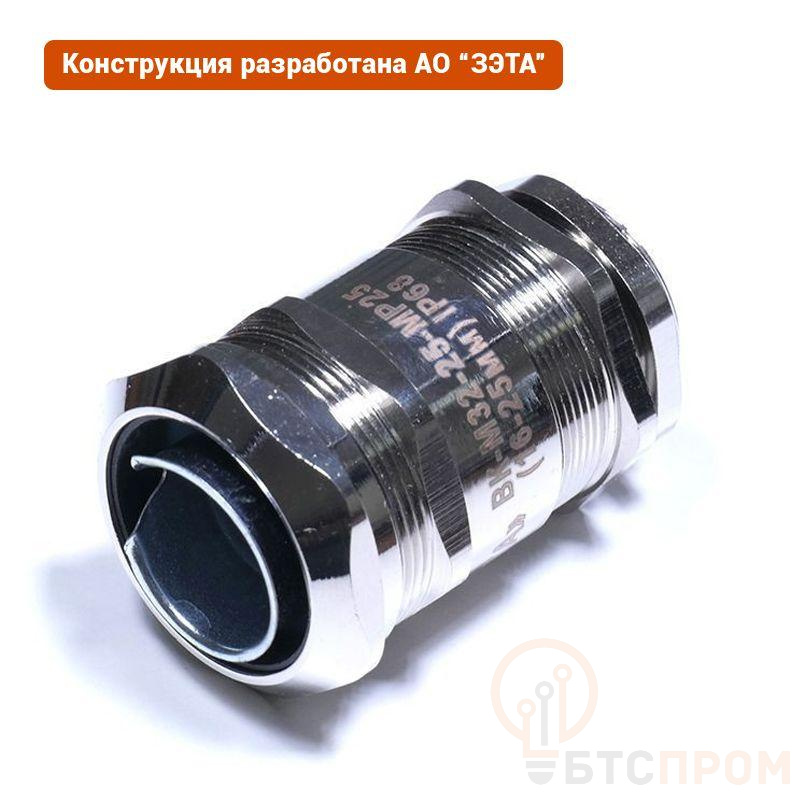 Кабельный ввод для металлорукава ВК-М-МР предназначен для герметичного ввода кабеля, проложенного в металлорукаве, в металлический корпус электрооборудования (щиты, шкафы, коробки и др.) и обеспечения надёжного электрического контакта между металлическим корпусом и металлорукавом в соответствии с п. 1.7.77 Правил устройства электроустановок. В конструкции кабельного ввода предусмотрена резиновая заглушка, предназначенная для обеспечения заявленной степени защиты IP68 до момента ввода кабеля в металлорукаве в корпус электрооборудования. Для обеспечения надёжного электрического контакта между металлорукавом и корпусом электрооборудования конструкцией кабельного ввода ВК-М-МР предусмотрена цепь надёжных электрических соединений конструктивных элементов: металлорукав - оконцеватель – зажимная муфта – штуцер – эквипотенциальная гайка – корпус.