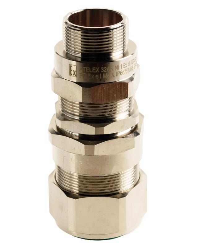 Взрывозащищенный кабельный ввод 32AK 05 для бронированного кабеля с двойным уплотнением для всех типов брони/оплетки. Надежно защищают кабель от случайного выдергивания, используются в местах, где необходимо иметь уплотнение IP 66/67/68 на внешней оболочке кабеля и взрывозащищенное уплотнение на оболочке под броней.
