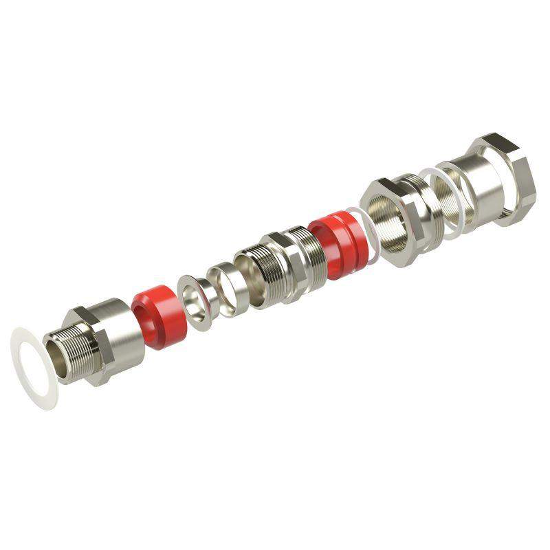 Ввод кабельный взрывозащ. серии КАС для бронир. кабеля М20х1.5 D5.8-12мм D9-17мм присоединительная резьба М25х1.5 IP66/68 никелир. латунь DKC KAC2M3MHK