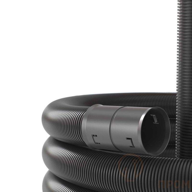 Труба гофрированная двустенная ПНД гибкая d200мм с протяжкой с муфтой для открытой прокладки стойкая к УФ SN6 ПВ-0 черн. (уп.35м) DKC 151920