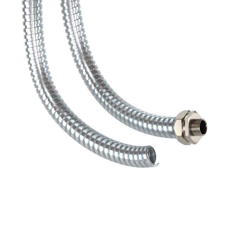 Гибкие металлические трубы могут прокладываться под удобным углом, что повышает адаптивность системы под различные задачи и облегчает монтаж. Отличительные особенности металлорукавов - гибкость и высокая прочность. Металлорукав из оцинкованной стали применяется для прокладки электрических, телефонных, телевизионных проводов. Внутренний диаметр - 26,5 мм. Уровень герметизации - IP 40.