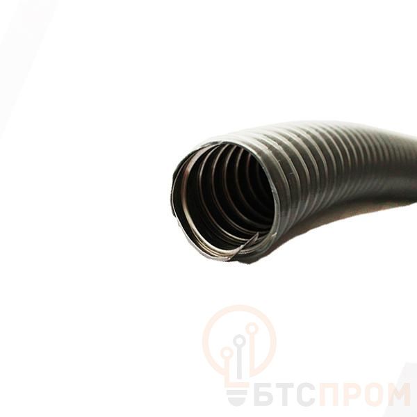 Рукав изготовлен из оцинкованной стальной ленты, что обеспечивает высокую прочность и стойкость к коррозии. Внешняя оболочка из поливинилхлорида (ПВХ) придает дополнительную защиту от ультрафиолета, масел и химических веществ, делая его долговечным в условиях интенсивной эксплуатации.