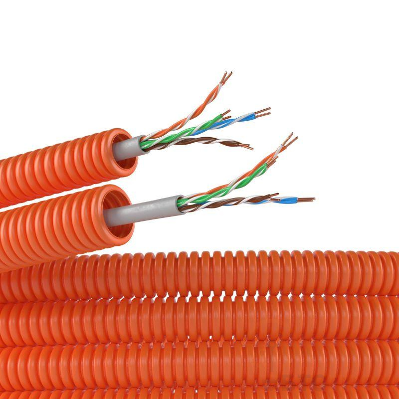 Электротруба ПНД гибкая гофрированная d16мм с кабелем витая пара 5EU/UTP нг(А)-HF (уп.50м) оранж. DKC 7EU91650