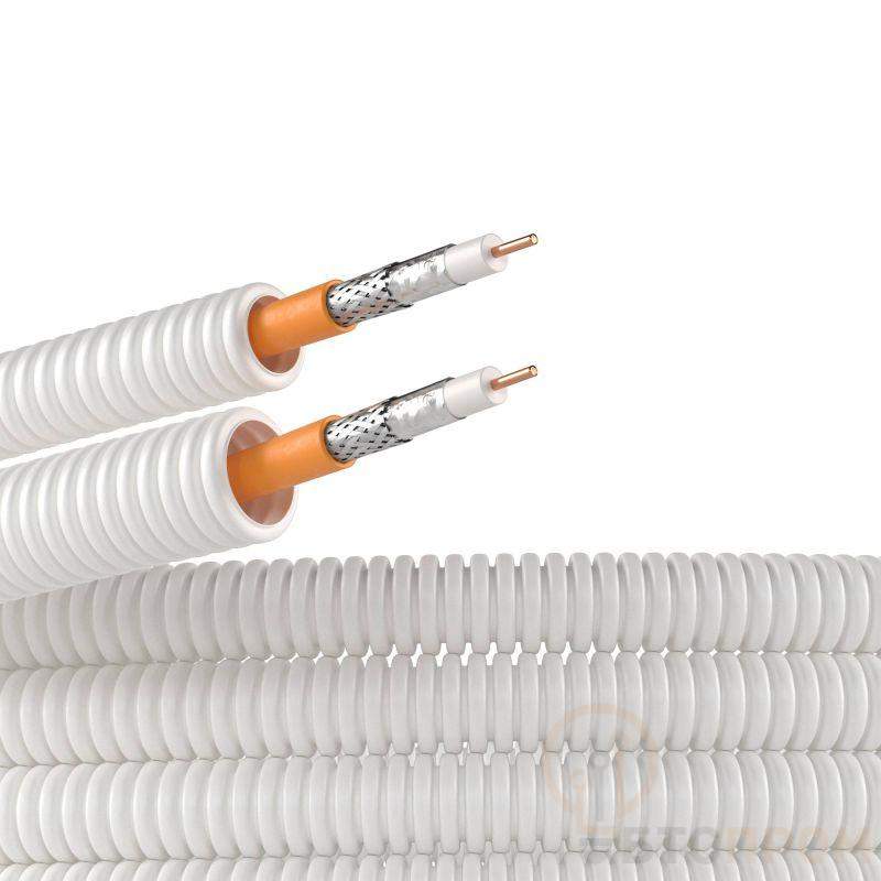 Элетротруба и из ПЛЛ не содержит галогенов гибкая гофрированная d20мм с коаксиальным кабелем SAT нг(А)-HF (уп.100м) бел. DKC 8VE820100HF