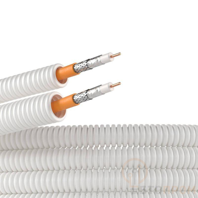 Элетротруба из ПЛЛ не содержит галогенов гибкая гофрированная d20мм с коаксиальным кабелем SAT нг(А)-HF (уп.50м) бел. DKC 8VE82050HF
