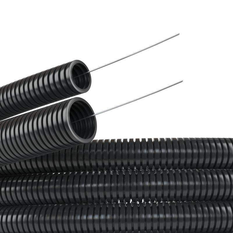 Труба гофрированная ПА 6 d36мм dвнутр.36.3мм dвнешн.42.5мм с протяжкой ПВ-2 черн. (уп.15м) DKC PA613643F2