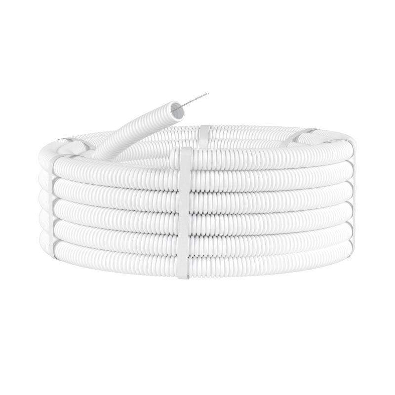 Безгалогеновые трубы изготовлены из специального полимера, который не выделяет вредных веществ при нагревании. Это их свойство делает такие трубы незаменимыми при строительстве и прокладке кабеля на объектах, предназначенных для пребывания большого количества людей - например, торгово-развлекательных центров, стадионов, концертных залов и т.д. Гибкая труба, не поддерживающая горение, имеет диаметр 16 мм. Для облегчения прокладки кабеля в комплект входит протяжка. Цвет - белый.