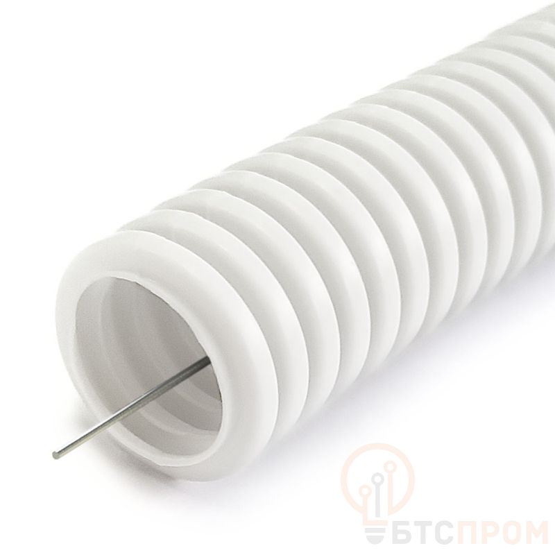 Труба гофрированная ПЛЛ легкая d20мм с протяжкой безгалоген. (HF) (НГ) бел. (уп.100м) Промрукав PR02.0215