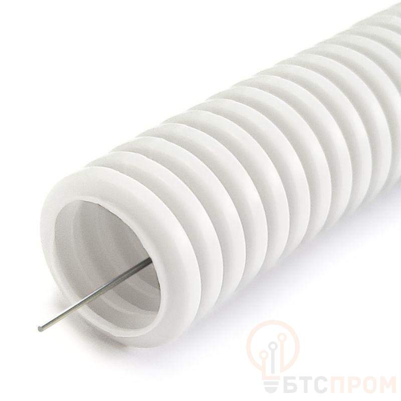 Труба гофрированная ПЛЛ тяжелая d20мм с протяжкой безгалогенная (HF) негорючая (НГ) бел. (уп.100м) Промрукав PR02.0240