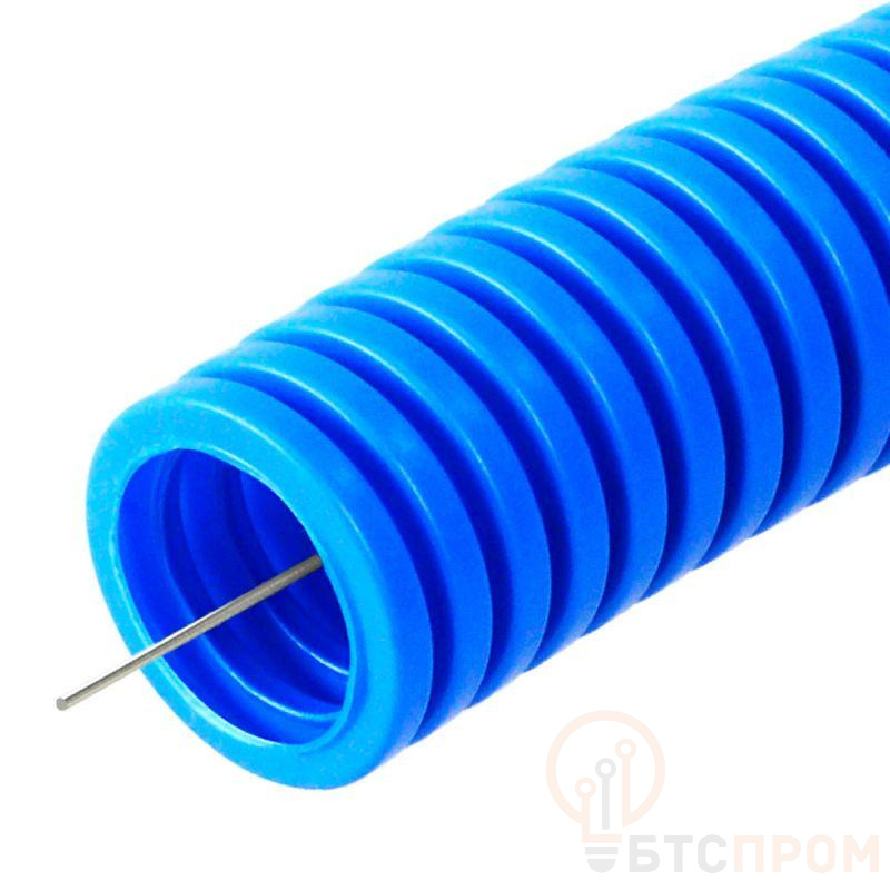 Труба гофрированная ПП легкая d16мм с протяжкой 350 Н безгалоген. (HF) син. (уп.100м) Промрукав PR02.0051